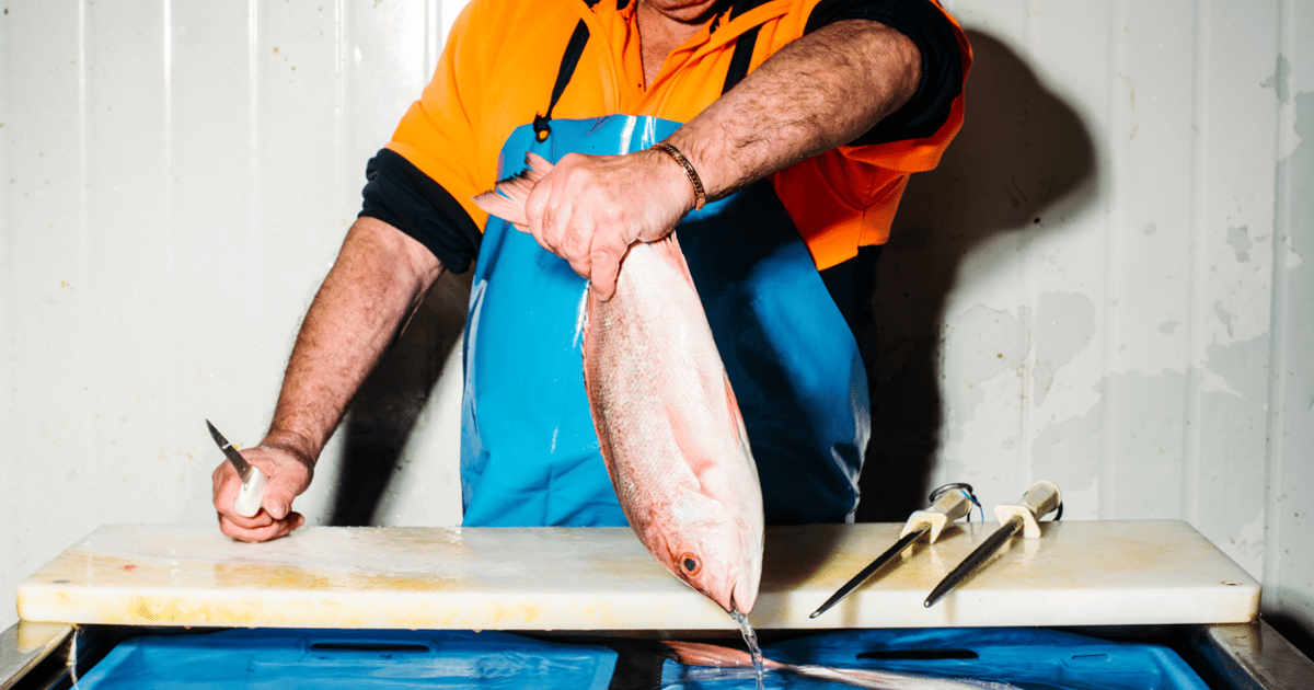 シドニーフィッシュマーケットでのフィッシュアンドチップスには、タイ(スナッパー)が使われています。