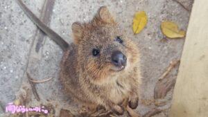 MiUフェリーでロットネスト島に着いた後、フェリー乗り場ですぐにクオッカがいました。クオッカは島の限られた場所にしかいないのかなと思っていたら、島中で会うことができました。イメージとしては、奈良公園の鹿に会う感覚に近いです