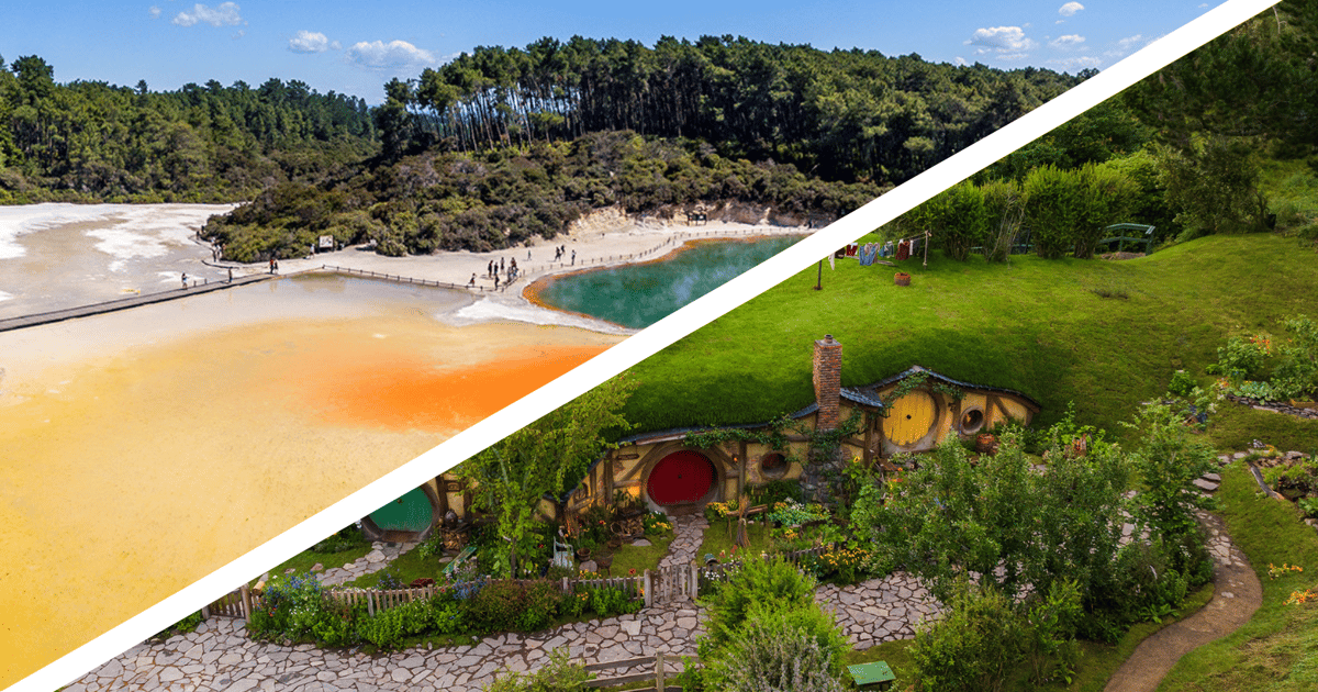 こちらのツアーでは、ロトルア湖や、「ロードオブザリング」の映画のセットとしてつくられたホビット村を訪れます。